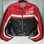 RJ240 Leather Racing Jacket with Red DST Symbols – Sizes Available: Medium & Large Only