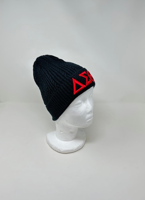 BK203 Black Cable-Knit Hat with Red DST Symbols