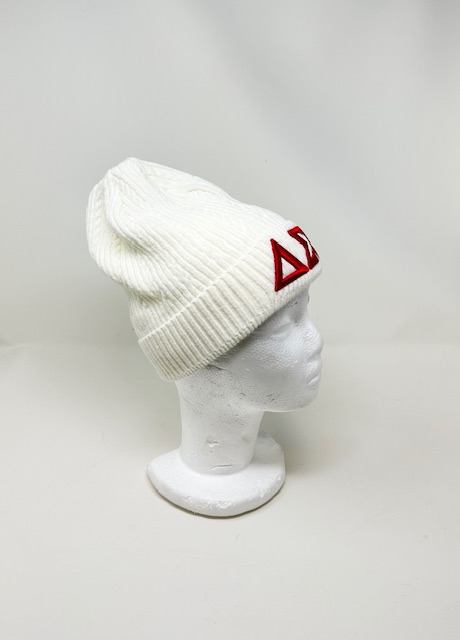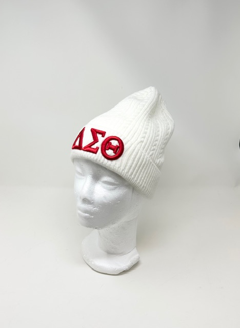 BK204 White Cable-Knit Hat with Red DST Symbols