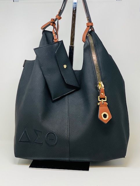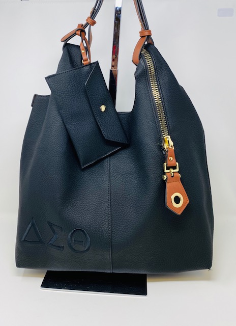 Black Zip Tote-Brown Handle with Black DST Symbols