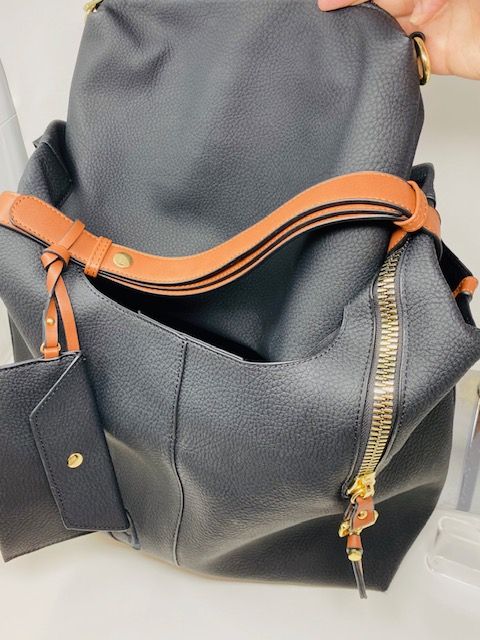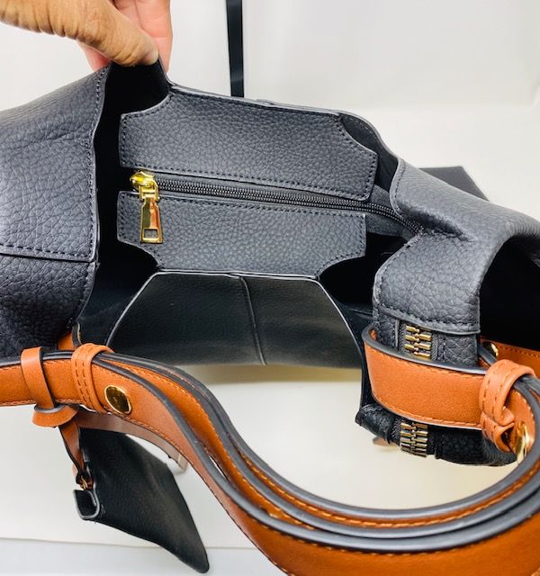 Be the first to review “Black Zip Tote-Brown Handle with Black DST Symbols”
