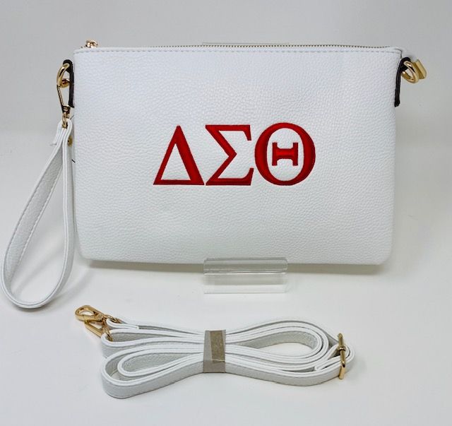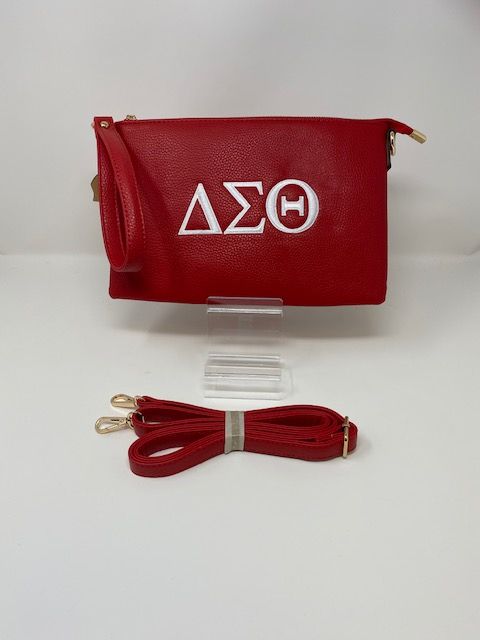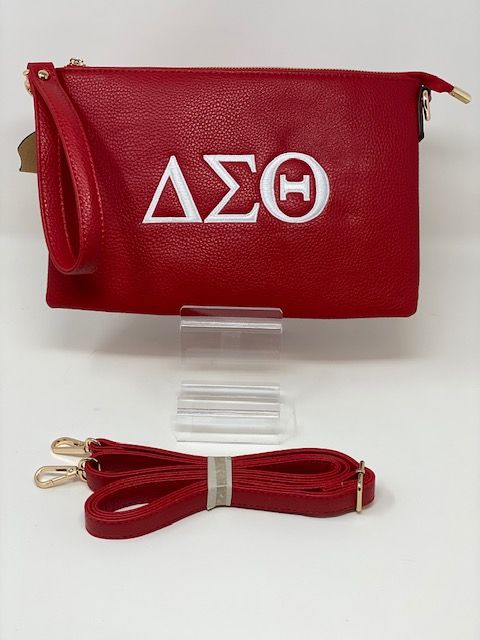 Red clutch with white DST symbols