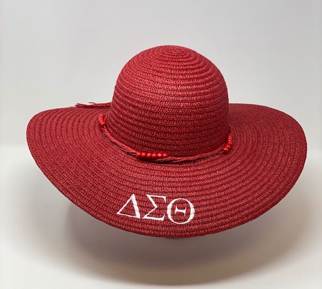 SKU: Red firm mid brim straw hat with white DST symbols Category: Tag: