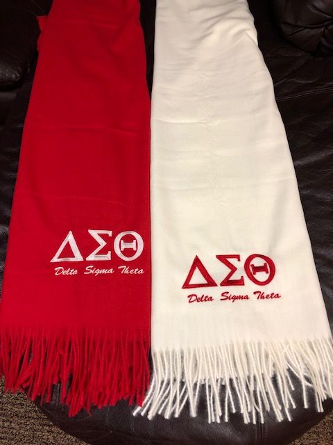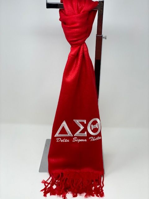 Red Pashmina scarf/shawl with white DST symbols