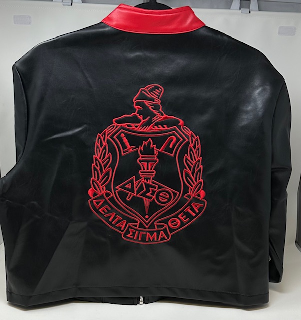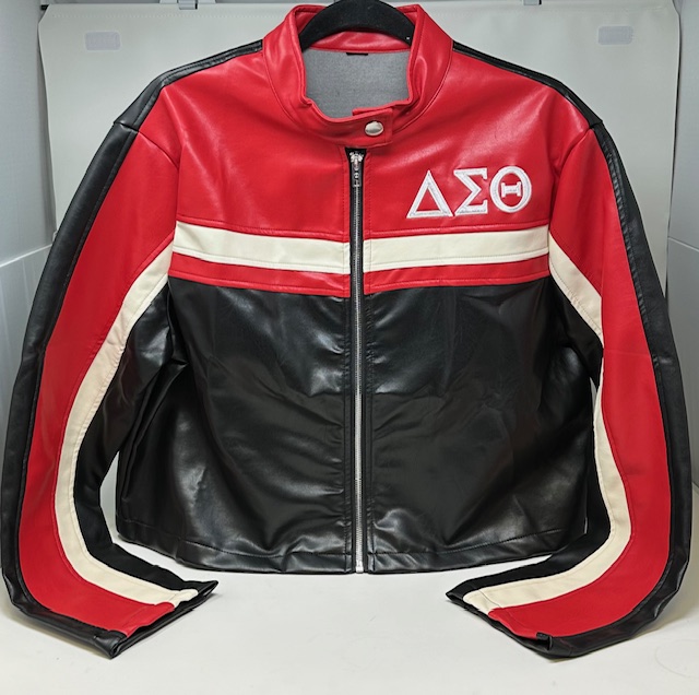 RJ240 Leather Racing Jacket with Red DST Symbols – Sizes Available Large Only in Stock