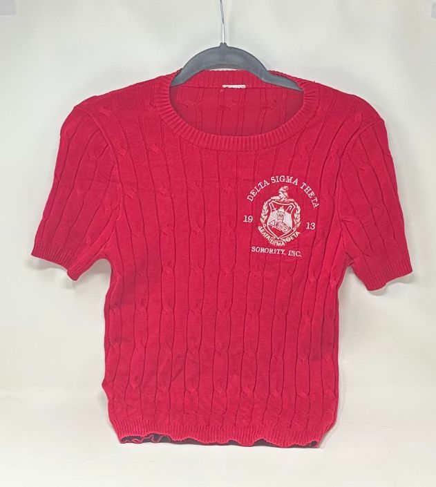 SW2200 Red Cable Knit Short Sleeve Sweater Sizes: S-XL (forgiving Stretch)