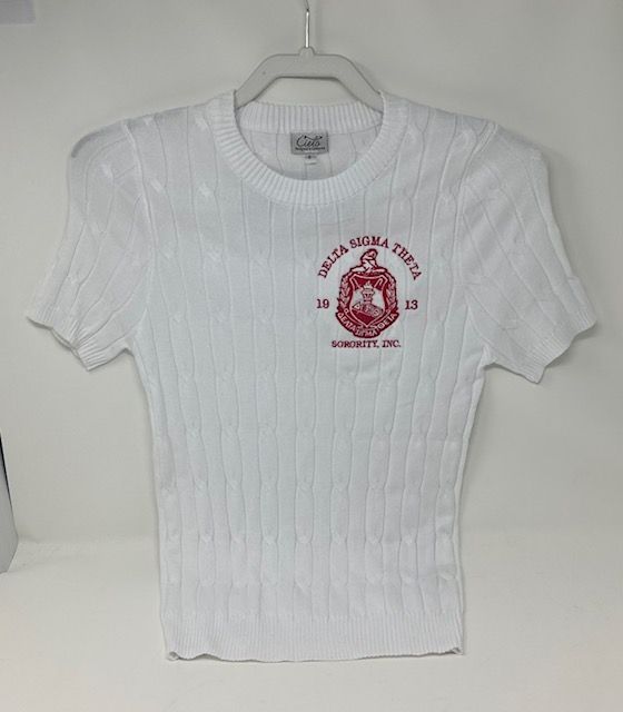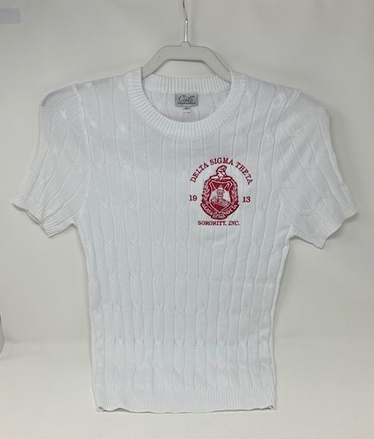 SW2202 White Cable Knit Short Sleeve Sweater Sizes: S-XL (forgiving Stretch)