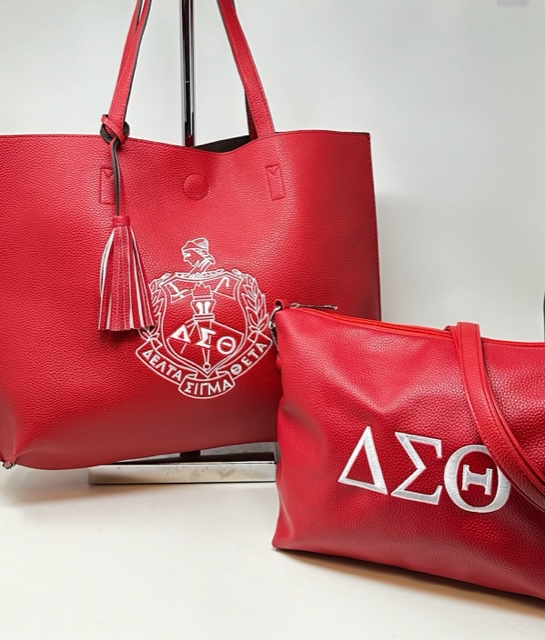 SKU: TT04 2-in-1 Red Tassel Tote with Crest | Embroidered Categories: , , Tag: