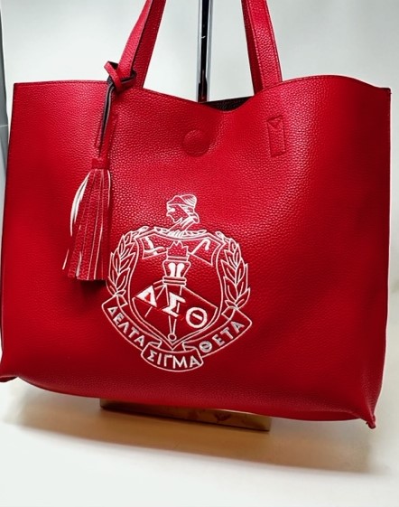 TT04 2-in-1 Red Tassel Tote with Crest | Embroidered