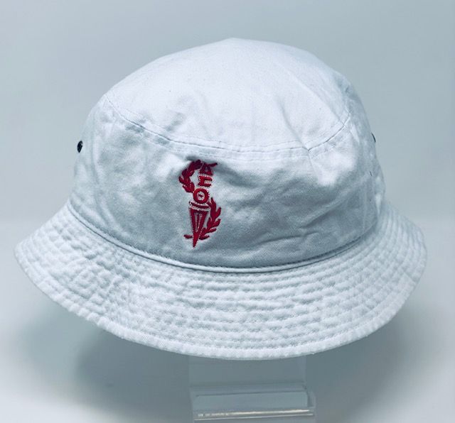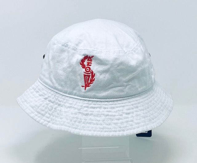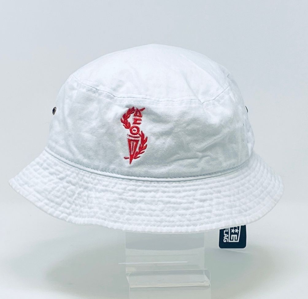 White bucket hat with red DST torch